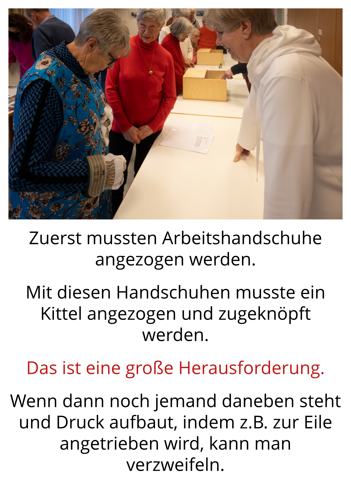 Der Demenz-Parcours "Hands-on Dementia" führt in verschiedenen Alltagssituationen durch einen gewöhnlichen Tag. Vom Anziehen bis zum Ausklang des Tages konnten die Teilnehmenden erleben, wie sich die Symptome einer Demenz anfühlen.